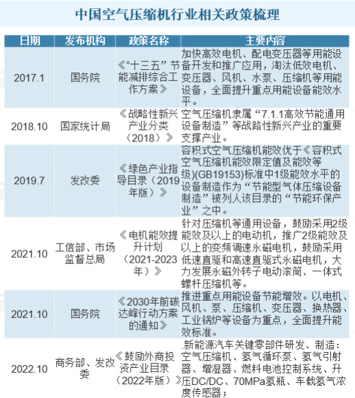 中国空气压缩机行业相关政策
